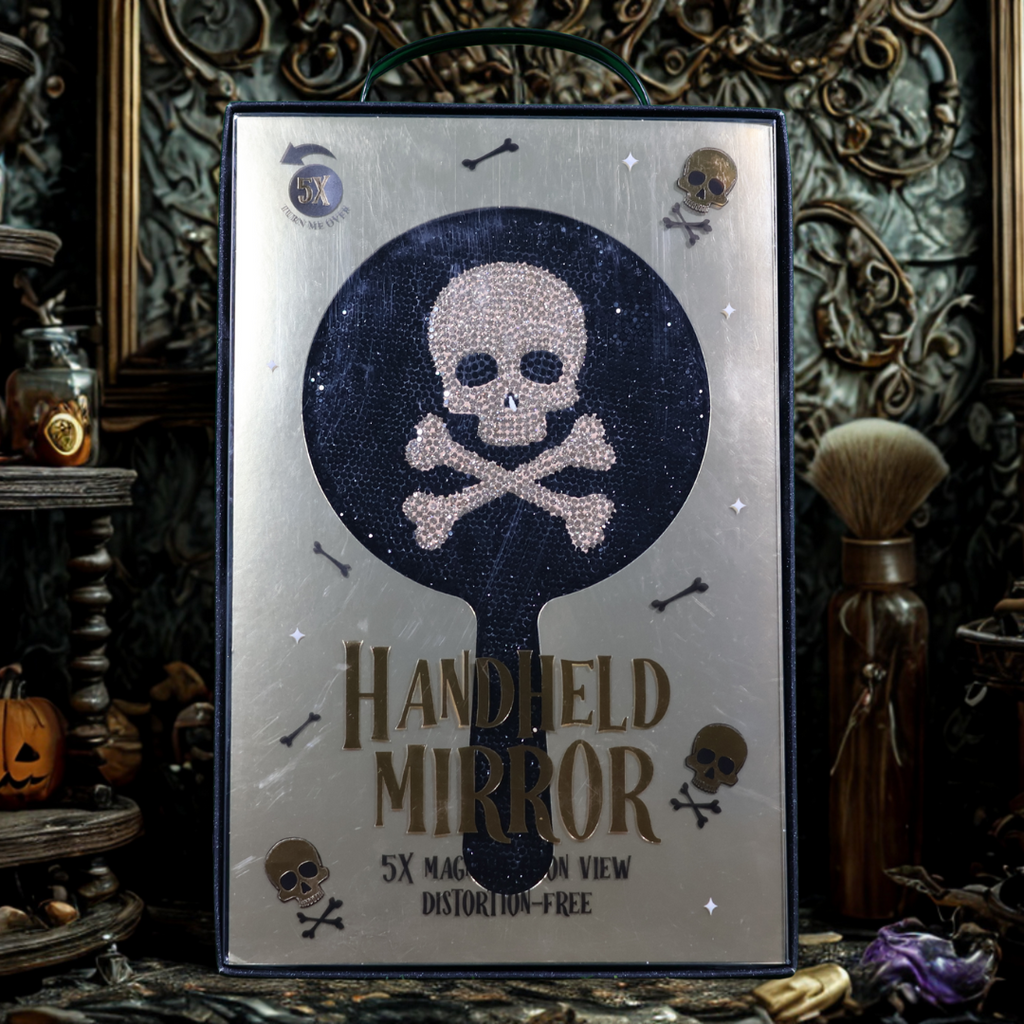 💀 Shine Sparkle & Smile – 5× Magnifying Skull Handheld Mirror